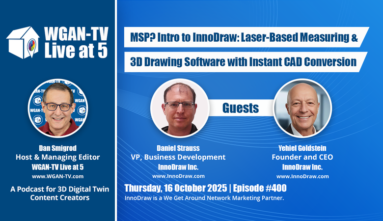 Text Me 10 Minutes Before WGAN-TV is Live | WGAN-TV | MSP? Introduction to InnoDraw: Laser-based Measuring and 3D Drawing Software with Instant CAD Conversion | Guests: InnoDraw Inc. VP, Business Development Daniel Strauss and InnoDraw Inc. Founder and CEO Yehiel Goldstein | Thursday, 16 October 2025 (5 pm Israel Time | 10 am EDT (Atlanta time) | Episode: 400 | www.InnoDraw.com | @InnoDraw @yehiel