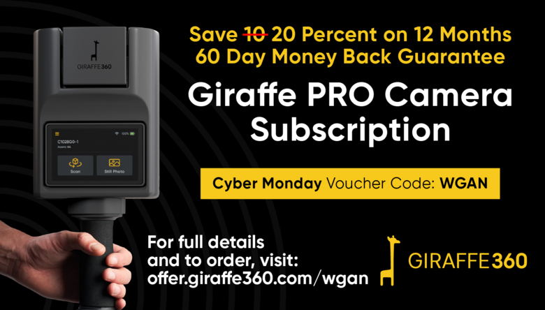Save 20 percent on the first 12 months of a Giraffe PRO Camera & Platform Subscription when you use Voucher Code - WGAN -- at offer.giraffe360.com/wgan -- now through midnight ET Monday, 1 December 2025.